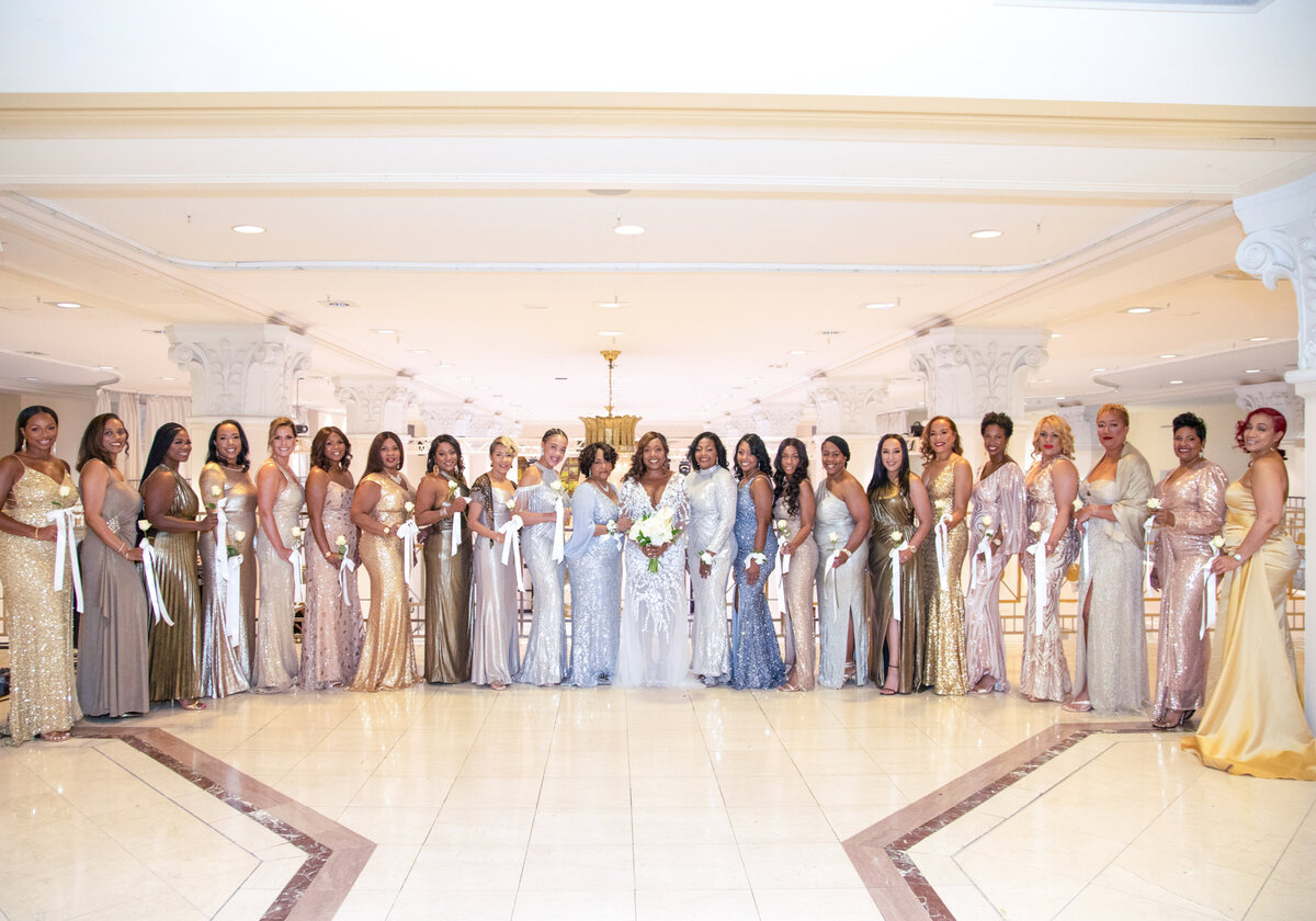 After group portraits, Ambre took a moment for special portraits with her mom, sister, and a few of her best friends who hold a cherished place in her heart. Against the backdrop of the grand chandelier, these photos were filled with laughter, sparkle, and sisterhood—capturing not just elegance, but the deep bonds of love and joy that surrounded her before her walk down the aisle.