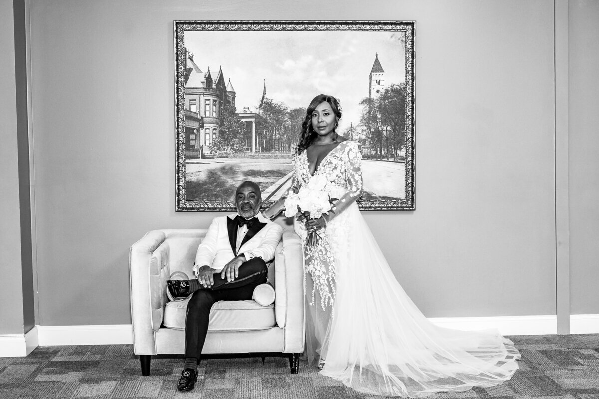 Under the glow of glittering chandeliers and across marble floors that seemed to shimmer like starlight, Ambre and Flemming’s love story unfolded in the grandest of settings. Their black-tie celebration at the Southern Exchange Ballroom in Atlanta was nothing short of a modern-day fairy tale. The ladies twirled in gowns that sparkled with elegance, while the men stood tall in sharp tuxedos, every detail adding to the magic of the evening. As the doors opened, all eyes turned to the bride, radiant as though she had stepped straight out of a dream, walking toward the man who had captured her heart.